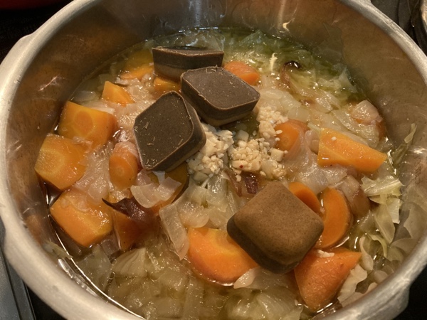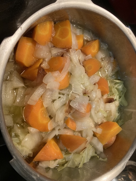 お寺流は、①キャベツ、②圧力鍋、③一晩寝かすの三点でございます。(カレールーの代わりにシチューのルーを入れたらシチューになります😆当たり前ですが)南無阿弥陀佛 合掌