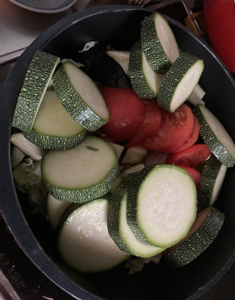 おはようございます。お参りにいきますと、『一心さん、コレ持ってかえり〜!』って夏野菜のお持たせがあります。お寺の庫裡の玄関先に新聞紙で包まれてさりげなく置いてくださるお方もいらっしゃいます。夏野菜、胡瓜🥒、茄子🍆、トマト🍅、カボチャ🎃、玉葱🧅、キャベツ🥬、ズッキーニ🥒、等々、さまざまな無農薬のトレトレ野菜❣️ 本当にありがとうございます。畑を持ってはるご門徒さまは、美味しく上手に育ててはります。先日、これらのお野菜で、ラタトゥーユをつくりまし た。トマトベースな料理なので、イタリアンかと思ってましたら、なんと、フランス南部のプロヴァンス地方の夏野菜のごった煮料理だそうです。