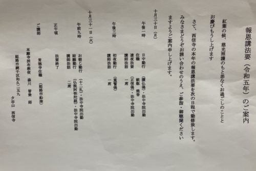 令和5年報恩講法要の初日です。コロナ禍は収束にいたってはおりませんが、四年ぶりに以前の通りのお勤めとなりました。