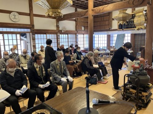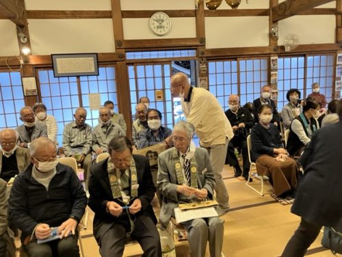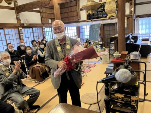 式次第にありますように、中村洋一総代さまが、退任されました。長きにわたり太田地区の総代を勤めてくださいました。沈着冷静、責任感が強く、そして控えめ。畑仕事はプロ並みで、美味しいお野菜を作っておられます。そのお人柄は皆がしるところでございます。感謝状、記念品、そして花束💐の贈呈がありました。西信寺を支えてくださり、本当にありがとうごいました。引き継ぎ名誉世話役として、お寺を支えてくださいます。有り難いことでございます。