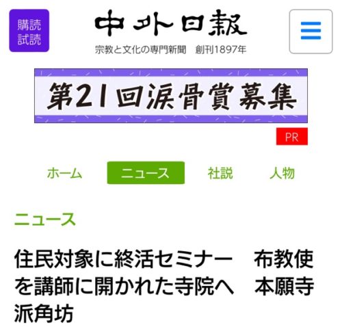 住民対象に終活セミナー 布教使を講師に開かれた寺院へ 本願寺派角坊(すみのぼう)9月5日