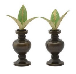 ②の華瓶ですが、もともとこの華瓶は、青木をいれるためのものではなく、水を入れるために用意された容器なのです。極楽浄土にあります水、【八功徳水】はっくどくすい(八種の徳性をもつありがたい水)を表現しております。水だけではいたみやすいので、青木をいれ、水が腐らないようにしております。