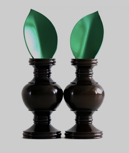 仏壇のお荘厳(しょうごん)で、四具足(しぐそく)があります。内訳は、①蝋燭立て ②華瓶(かひん)×2 ③火舎(かしゃ)の4つです。