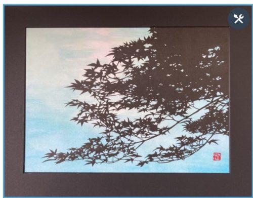 自然を見つめスケッチし、黒い和紙を『ナイフで切った感触』を画面に残し、切れ味の鋭い線や柔らかい線などを調和させて、切り抜いた和紙を台紙に貼って作品を完成させる絵画です。ときには、黒を活かすために彩色したりする技法があります。