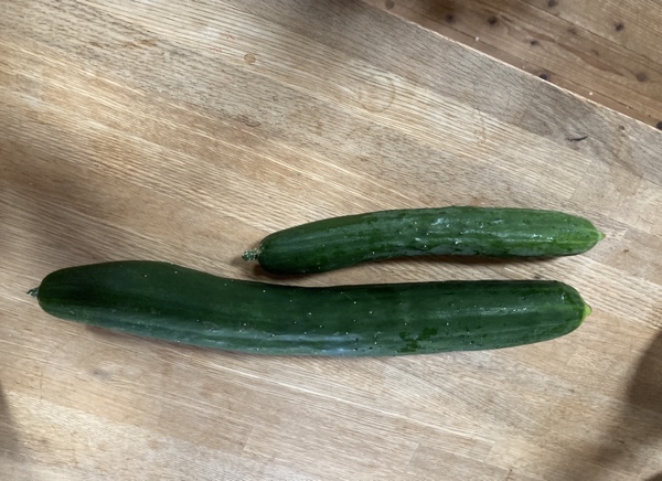 👆ほんの一部 中にはヘチマかズッキーニ大のマンモス胡瓜も!(雨で畑にいけなくて、収穫遅れた〜!って総代さん😆)👇
