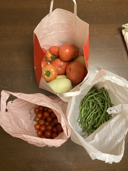 連日ご門徒様から、お茄子の🍆胡瓜🥒トマト🍅、インゲンなどなどをいただいております。どこも収穫は同じ時期になりますから、いろんなところから、お寺に一極集中します😆 新鮮なお野菜ありがとうございます。一二美さん晴康さん!ありがとうございます〜網干メロンも〜❣️