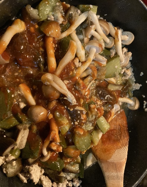 ぶなしめじをいれてみよ〜👇なんでもよいんです!ピーマンとか!
