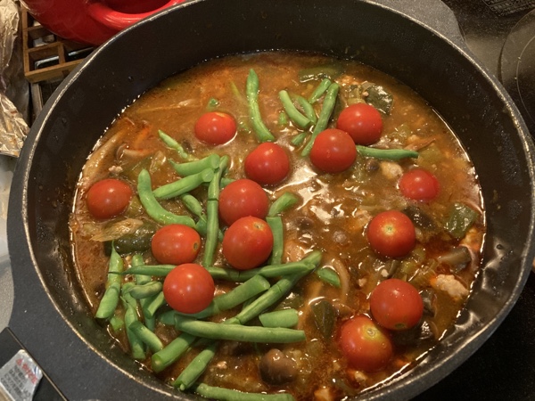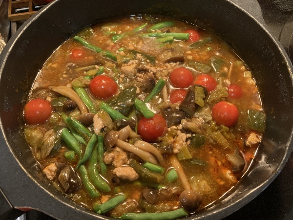 最後にインゲンとプチトマトを入れて、ひと煮立ちしたら完成です!