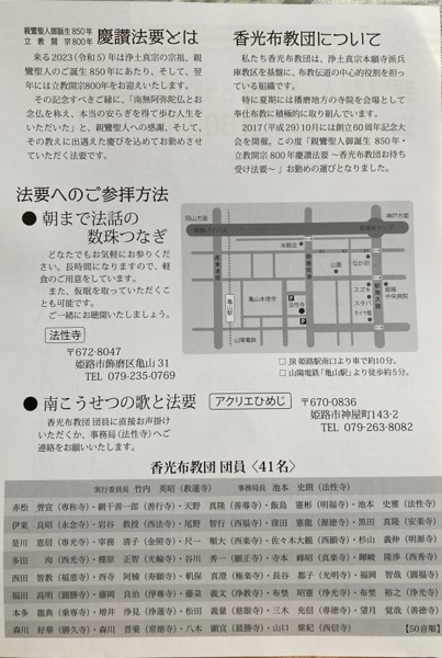 10月1日 姫路アクリエホールにて、浄土真宗本願寺派香光布教団主催によります、親鸞聖人御誕生850年/立教開宗800年慶讃法要が営まれます。